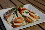 Homemade fresh mozzarella with roasted red peppers, plum tomatoes, extra virgin olive oil & basil.
